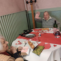 A l'occasion de la fête des amoureux, la Maison de l'Amitié met les petits plats dans les grands afin de célébrer l'amour entre quatre couples de résidents. Tables en retraits pour préserver leur intimité, pétales de roses au sol et sur les tables, cadre photo, brochette de bonbon et message caché (à gratter), ces derniers étaient plus amoureux que jamais. Ils disent qu'ils ne peuvent vivre l'un sans l'autre... la longévité de ces couples toujours amoureux tient au respect qu'ils se témoignent. Mais tous n'ont pas cette chance, alors ce même jour nous avons aussi fêté la fête de l'amitié en réconfortant et en embrassant tous nos autres résidents